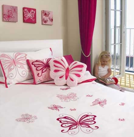 Bé gái nào cũng mơ ước mình có một căn phòng đáng yêu, điệu đà để tha hồ bay bổng trong không gian ấy. Thay vì hình ảnh chàng hoàng tử, nàng công chúa trong cổ tích hay cánh đồng hoa ngập tràn màu sắc, bạn có thể sử dụng hoạ tiết những cánh bướm xinh xinh. Từ thảm trải sàn, ga giường, gối ngủ, cho đến những bức tranh trang trí... Rất nhẹ nhàng mà xinh xắn đúng không nào? Chắc chắn rằng trong một không gian như thế, bé yêu có thể thoả sức tưởng tượng ra một câu chuyện cho riêng mình...